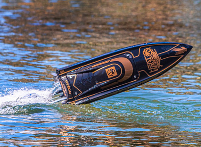 Radio control electric boats are available in many styles. Tunnel hull and hydroplane RC boats are among the fastest, with flat bottoms that skim across smooth water with little resistance when up to speed. For rougher conditions, the V-shaped hull of deep vee RC boats is best. Though not quite as fast, a deep vee can cut more easily through choppy water. Electric RC boats come in many sizes, including mini, which can be run in swimming pools or small ponds. The jet pump propelled Pro Boat® Jet Jam™ mini RC boat is a blast in water only three inches deep!